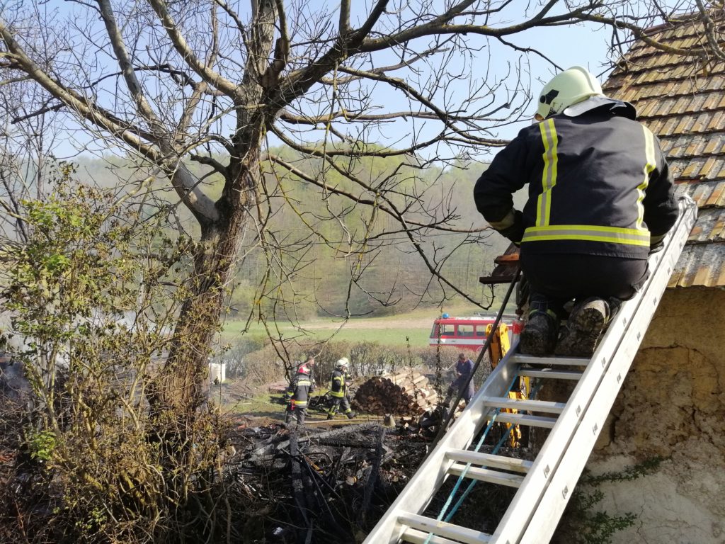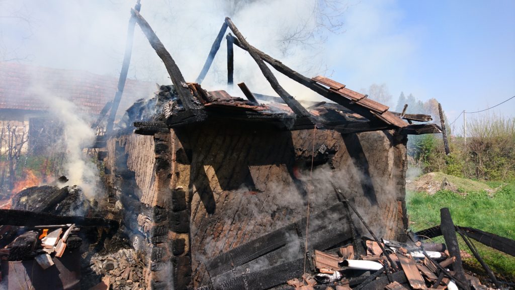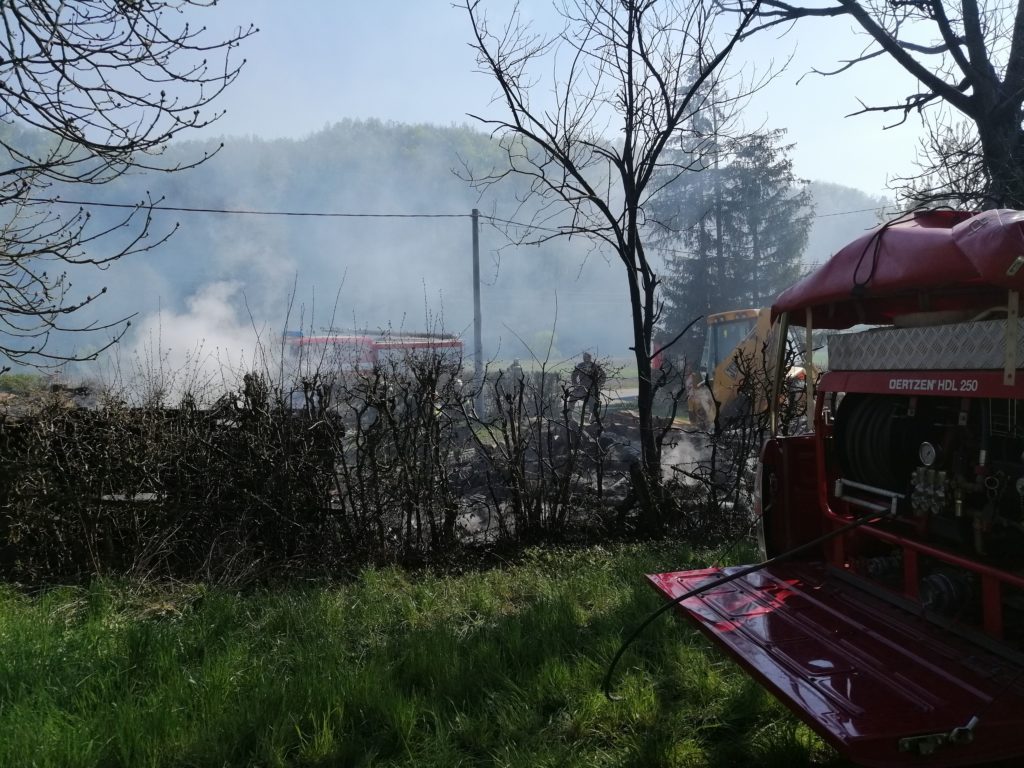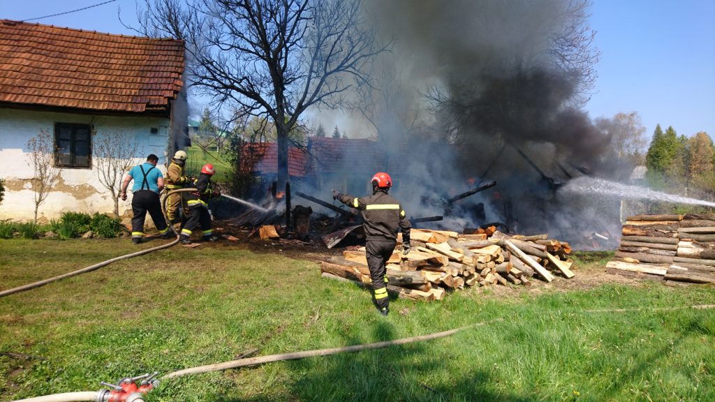 Dana 16.travnja 2019. godine u 13,57 sati zaprimili smo dojavu putem sirene i SMS poruka iz VOC-a Varaždin o požaru gospodarskog objekta-štaglja u Gornjoj Voći 135. Na mjesto intervencije izlazi malo navalno vozilo Mazda sa 3 i navalno vozilo DAF-1800 sa 4 i kombi sa 3 vatrogasaca. Dolaskom na mjesto intervencije zatičemo požar u razbuktaloj fazi i započinjemo gašenjem požara i aktivnom obranom stambenog objekta koji je bio udaljen svega 2 metra od požarišta, a kojem je dio krovišta već bio zahvaćen vatrom. Kako je u blizini požarišta hidrant bio neispravan , a po vodu se odlazilo 1 km ,u pomoć je pozvana auto-cisterna DVD Ivanec. Intervencija je uspješno završena u 16:45 sati.