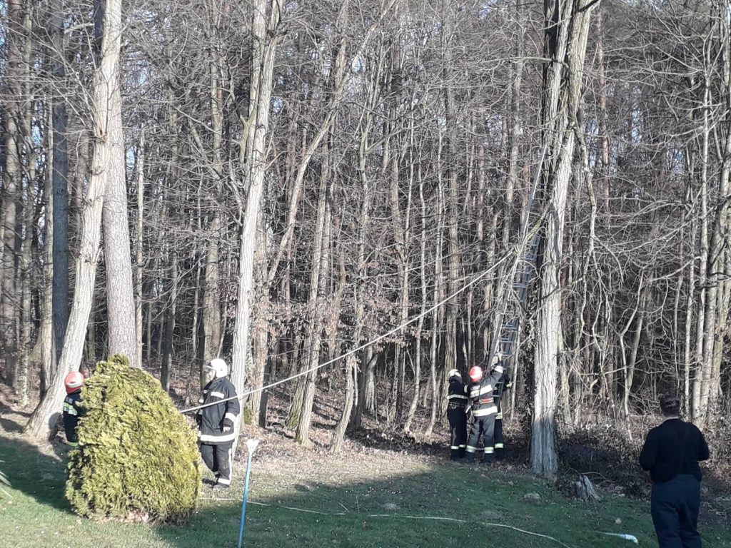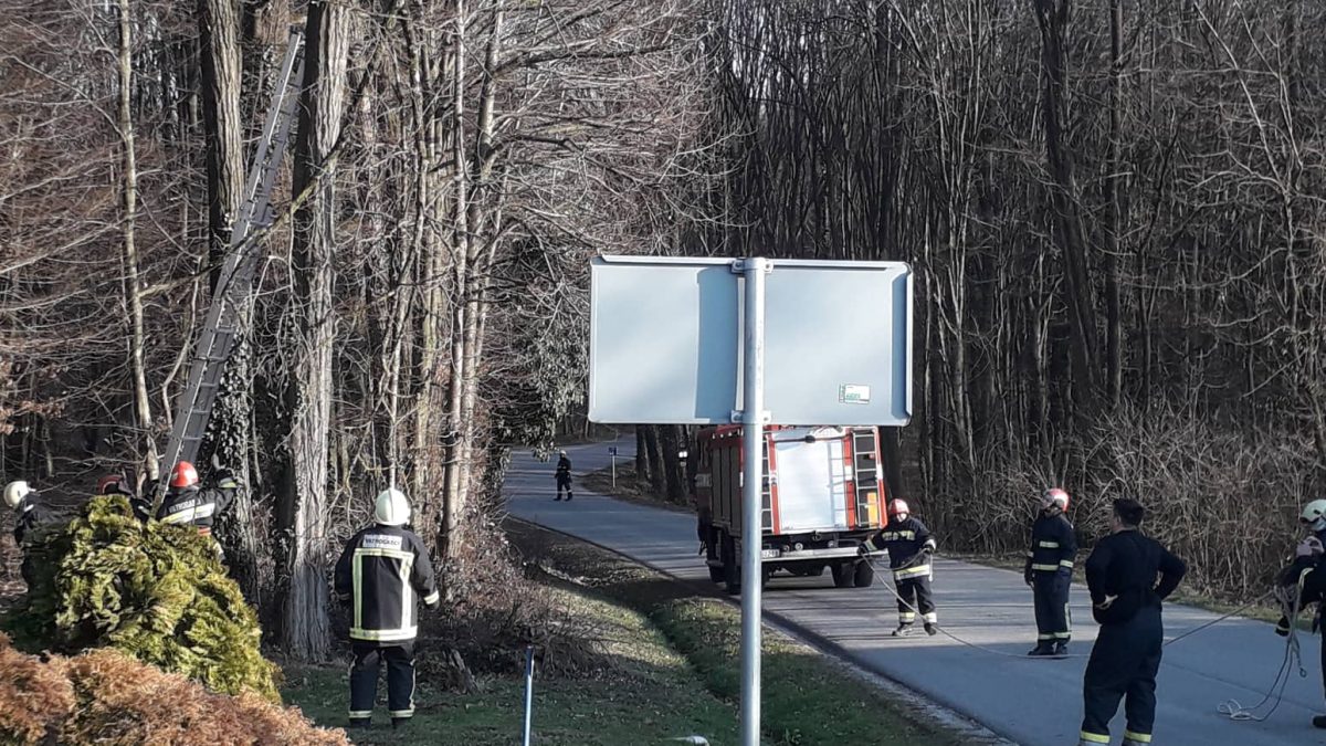 Dana 09. veljače 2020. godine u 15,34 sati zaprimili smo dojavu putem sirene i SMS poruka iz VOC-a JVP Varaždina o stablu na nerazvrstanoj cesti od Donje Voće prema Plitvici Voćanskoj. Na mjesto intervencije izlazi navalno vozilo DAF-1800 sa 8 i kombi sa 7 vatrogasaca i jednom motornom pilom. Dolaskom na mjesto intervencije uklanjamo pomoću ljestvi granu sa stabla debljice cca 20 cm i dužine cca 7 metara , a koja je prijetila da padne na cestu i pješačku stazu prema obiteljskoj kući. Prilikom pada drana ruši još jedno trulo stablo debljine 30 cm koje pada na cestu, te smo istu i očistili. Intervencija uspješno završena u 16,23 sati.
