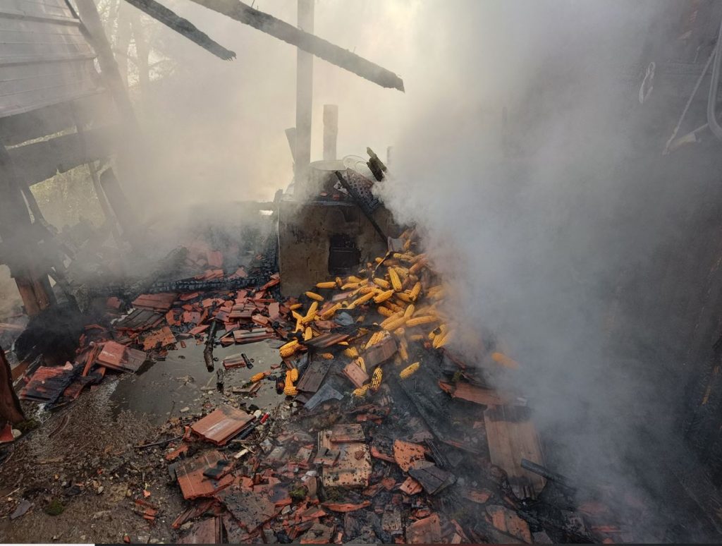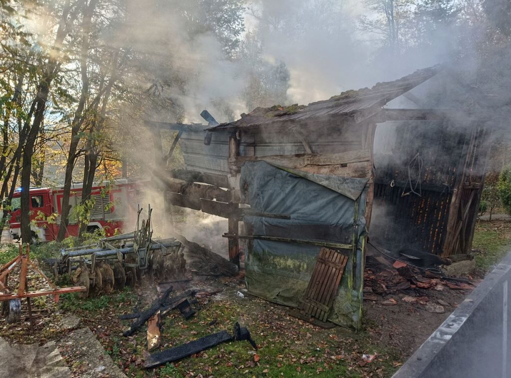 Dana 12. studenog u 7:55 sati naše vatrogasce probudila je dojava putem sirene i SMS poruka iz VOC-a Varaždin o požaru gospodarskog objekta-šupe u Plitvici Voćanskoj. Na mjesto intervencije izlazi veliko navalno vozilo MAN sa 4, malo navalno vozilo mazda sa 4 i kombi sa 8 vatrogasaca, dok 3 vatrogasca ostaju u pričuvi. Dolaskom na mjesto intervencije zatičemo požar u razbuktaloj fazi i započinjemo gašenjem požara koristeći pritom izolacione aparate zbog gustog dima. Objekat je bio poluotvorenog tipa pa je požar vanjskom navalom ubrzo stavljen pod nadzor a potom i ugašen. Nakon gašenja požara napravljena je provjera požarišta termokamerom kako bi ugasili sav preostali žar.
